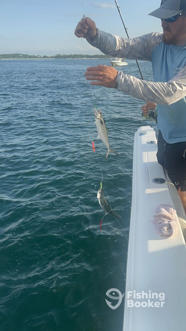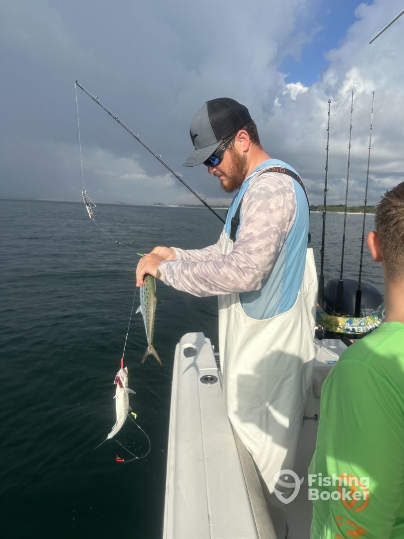 The trip was scheduled for inshore 4hr trip but captain Garrett ended up taking us offshore due to to many boats in the water...