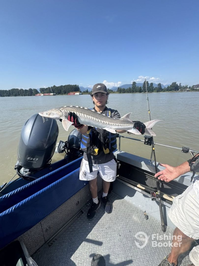 - Family Learn to Fish/Picnic Option or Hard Core Sturgeon Fishing Family Learn to Fish/Picnic Option: In the Family Learn to Fish/Picnic option, families with young children (3 to 10 years old) can fish for sturgeon, (usually 1 or 2 hours) and then learn to fish for smaller species and if they pack a picnic lunch or pick a lunch up at a local shoreside bistro can combine fishing with a shoreside picnic. The picnic sites are either a small sandy beach or a campground with picnic tables and washroom. The schedule can be divided between learning to fish and running around and playing on the beach. Hard Core Sturgeon Fishing Option; This is more suited to adults and older children (usually aged 9 and up) who can sit for a longer period till the sturgeon bite comes on. Sturgeon fishing is highly dependent on the tides and is strictly a bottom fishing technique. I will recommend the best time of day to fish and the boat is navigated to likely spots where sturgeon hang out and anchored. One rod per person can be used and up to four rods are cast out at a time if there are enough licensed people on board. Sturgeon fishing usually requires a degree of patience as the bite is often tied to the stage of the tide in the area where we fish. The bites can range from being very subtle to nearly ripping the rod out of the holder but the size of the fish does not necessarily reflect the intensity of the bite so every fish is a surprise.