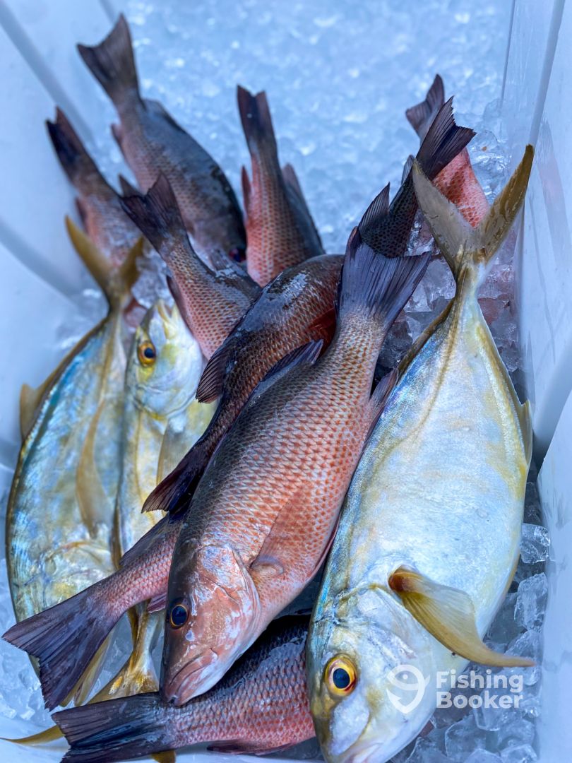 - Depending on the time of year we target a variety of species we use live bait most of the time along with lures and jigs!!