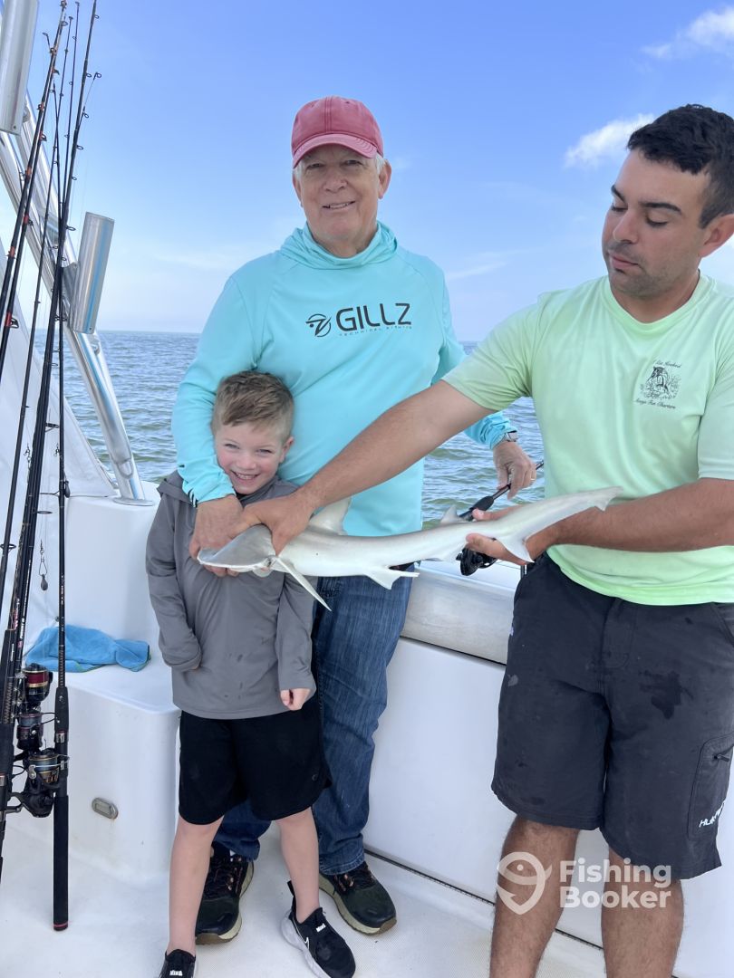 First time fisherman with friends. Captain Neal and crew took care of us.ย I caught a shark! Naw really it was fun.