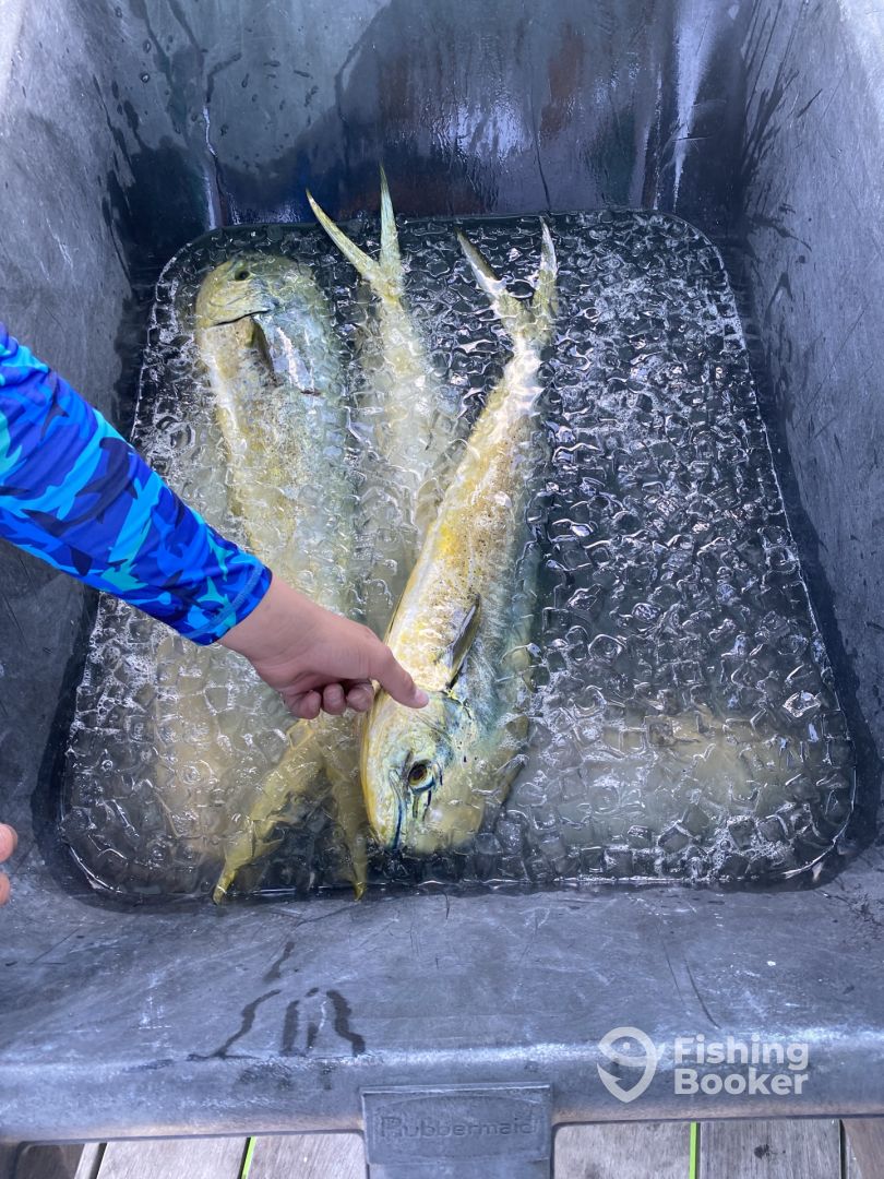 A+++fishing charter. Booked a 6 hour trip for 4 ( 2 adults and 2 teenage boys) . Start off by saying we had a great time and caught keeper Mahi. Tommy kept multiple rigs going at once . He worked hard the entire time and helped the boys on technique to ensure they brought in the catch . Great conversation and great boat . The air conditioned cabin is equipped to store your food/ drinks and misc as well as provided opportunities at your leisure to cool off and rest . Eric, the boat navigator, is a skilled driver and ensured he maneuvered us through waters to ensure weโd score a catch . Afterwards, Tommy filleted the fish and packaged them . Moreover, he recommended a nearby restaurant โBoat House at Turtle Krallsโ to take some of our catch to for them to cook. Tommy escorted us personally. Our fried and blackened Mahi was exquisite and the sides delicious. Definitely worth it!ย Thank you for a great day Tommy and Eric. We highly recommend your chartering services.