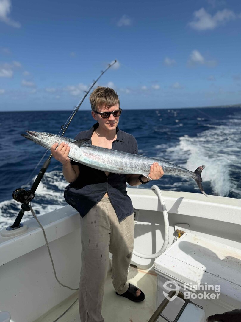 Had an awesome fishing trip with Captain Robbie and Hatch. Brought my wife and two children (9yo boy and 6th girl) and everyone got in on the action! Captain Robbie and Hatch took great care of us as we trolled up and down the west side of the island. Caught two ~30+ pound wahoo and several small tuna. Return taxi service was provided which removed any stress from finding the launch point. Would highly recommend for anyone looking for a relaxed in shore trip with family or friends. Will definitely sail with Captain Robbie again when we return to Barbados!
