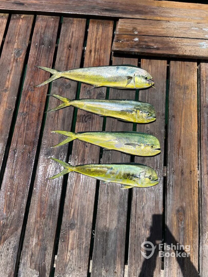 But if youโre reading this review, youโre probably here for the fishing, so Iโll jump to that. We went on a 4 hour trip with fair seas in September; but Iโd recommend a 6 to maximize effort and odds. Fishing is fishing, and we did not do well with the Mahi (in no part due to a lack of trying!). Captain Tom and Chris were constantly adjusting the trolling distances, bait, and teasers to diversify the effort.