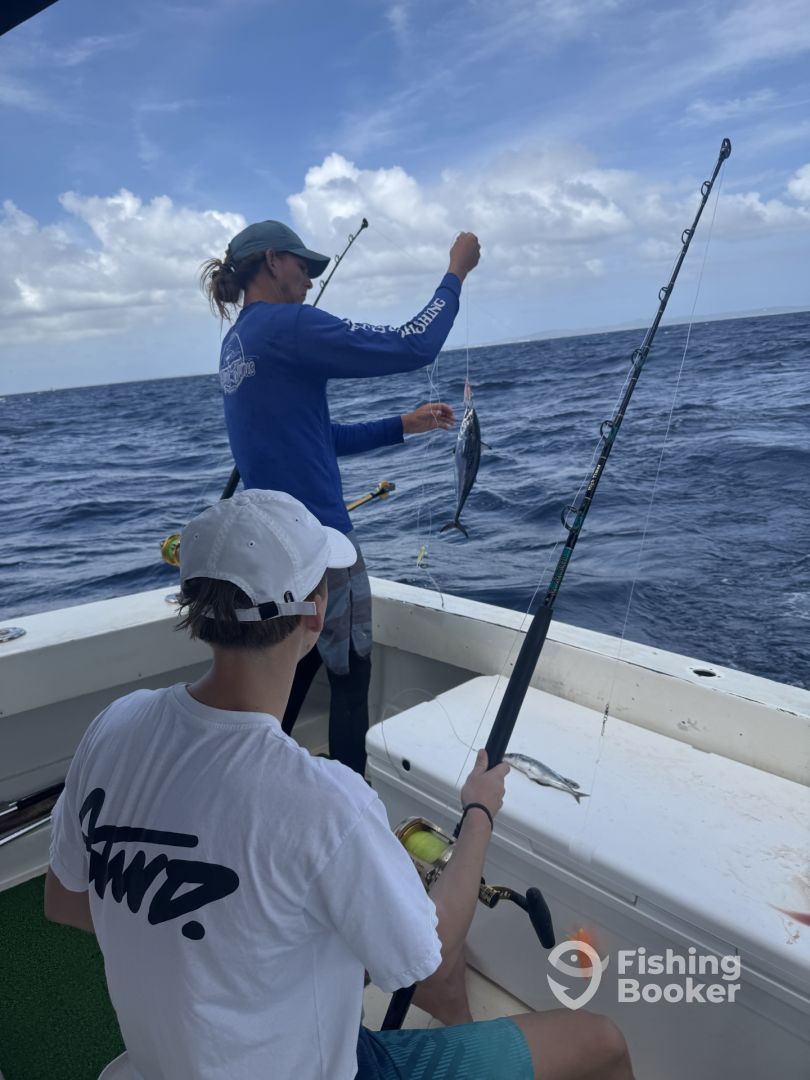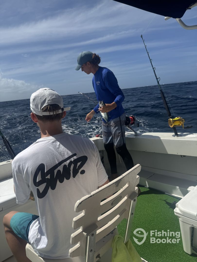 We booked a family fishing charter with seven of us. Six of the seven had never chartered before. Captain Tom and first nake Chris made everyone feel comfortable. we had a grest time, caught 3 barracuda. All aboard said they would love to go again. Great experience!
