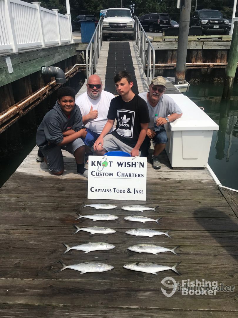 1st Class all the way! I would recommend this trip to anyone, especially with kids. Just long enough but time does go fast when your pulling in the fish! We caught 10 or so Mackerel along with some nice sized Bluefish. Couple nice bites with the blacktip sharks but we did end up catching a nice sized one! Capt. took our fish and cleaned them for us and took them to this little food truck and they cooked them for us. Had some fish sandwiches and still had a ton of fish for leftovers. See... Meer